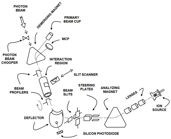 To implement the experimental realization of photoionization Equation (2), an ion beam and a photon beam are merged. Also, parameters, such as their width, intensity, and overlap length have to be measured.