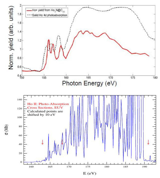 - Very good agreement with the observed features in Figure 1 is found when compared with the calculated spectral features of Ho II. The observed features were generated by the photoabsorption of Ho II as the Ho compound was fragmented. The agreement is very good given given the strong electron–electron correlation interaction of a large atomic system like Ho II.