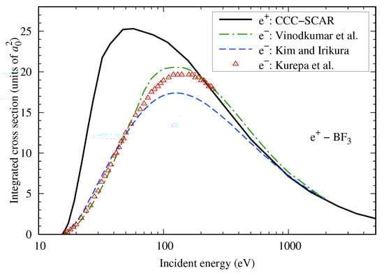 - Vinodkumar, M.; Korot, K.; Limbachiya, C.; Antony, B.K. Screening-corrected electron impact total and ionization cross sections for boron trifluoride (BF3) and boron trichloride (BCl3). J. Phys. B At. Mol. Opt. Phys. 2008, 41, 245202. [Google Scholar] [CrossRef]