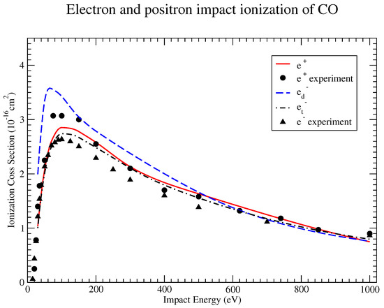 - Mangan, M.A.; Lindsay, B.G.; Stebbings, R.F. Absolute partial cross sections for electron-impact ionization of CO from threshold to 1000 eV. J. Phys. B At. Mol. Opt. Phys. 2000, 33, 3225. [Google Scholar] [CrossRef]