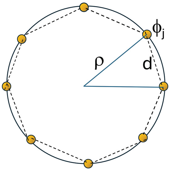 Scheme of the system: a ring with interparticle distance d, radius , and angular position given by .