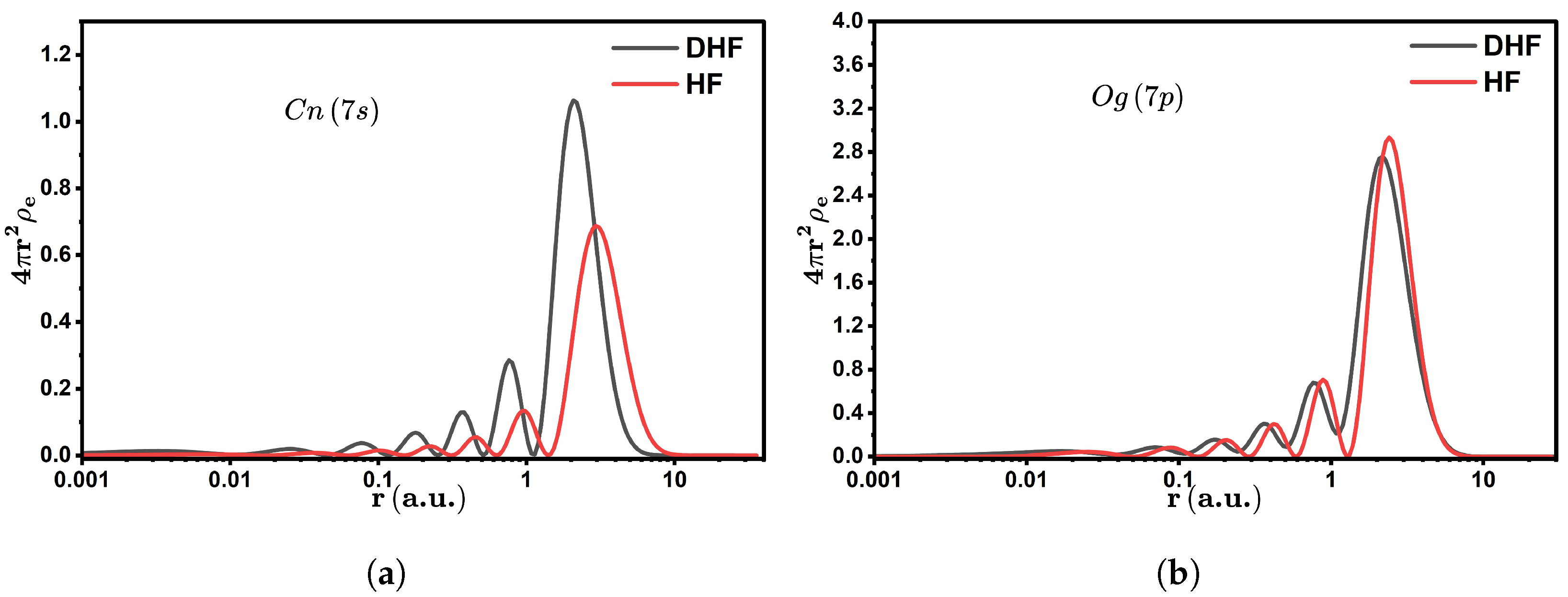 - Kumar, R.; Chattopadhyay, S.; Angom, D.; Mani, B.K. Relativistic coupled-cluster calculation of the electric dipole polarizability and correlation energy of Cn, Nh+, and Og: Correlation effects from lighter to superheavy elements. Phys. Rev. A 2021, 103, 062803. [Google Scholar] [CrossRef]
