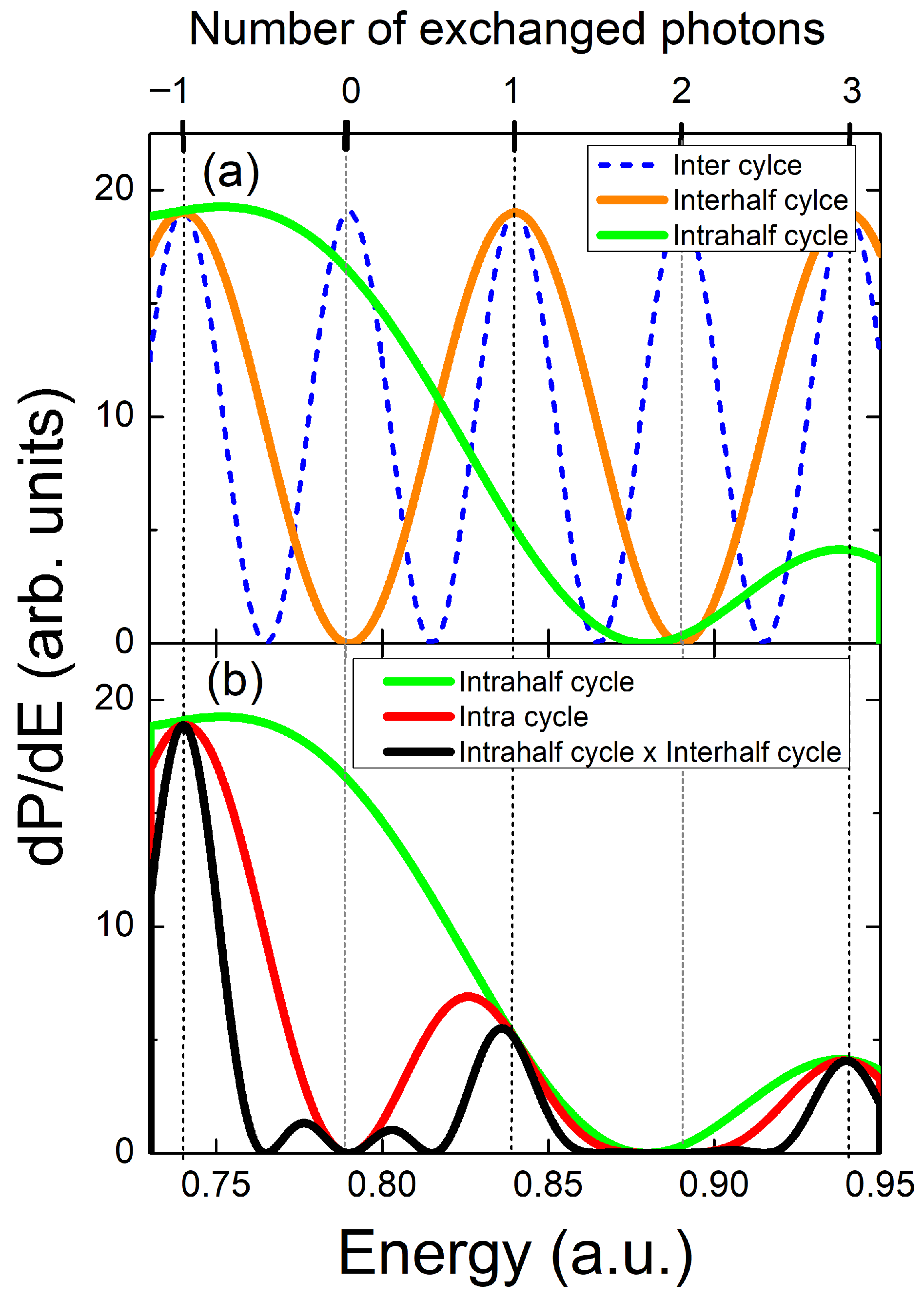 - Gramajo, A.A.; Della Picca, R.; López, S.D.; Arbó, D.G. Intra- and intercycle interference of angle-resolved electron emission in laser-assisted XUV atomic ionization. J. Phys. B At. Mol. Phys. 2018, 51, 055603. [Google Scholar] [CrossRef]