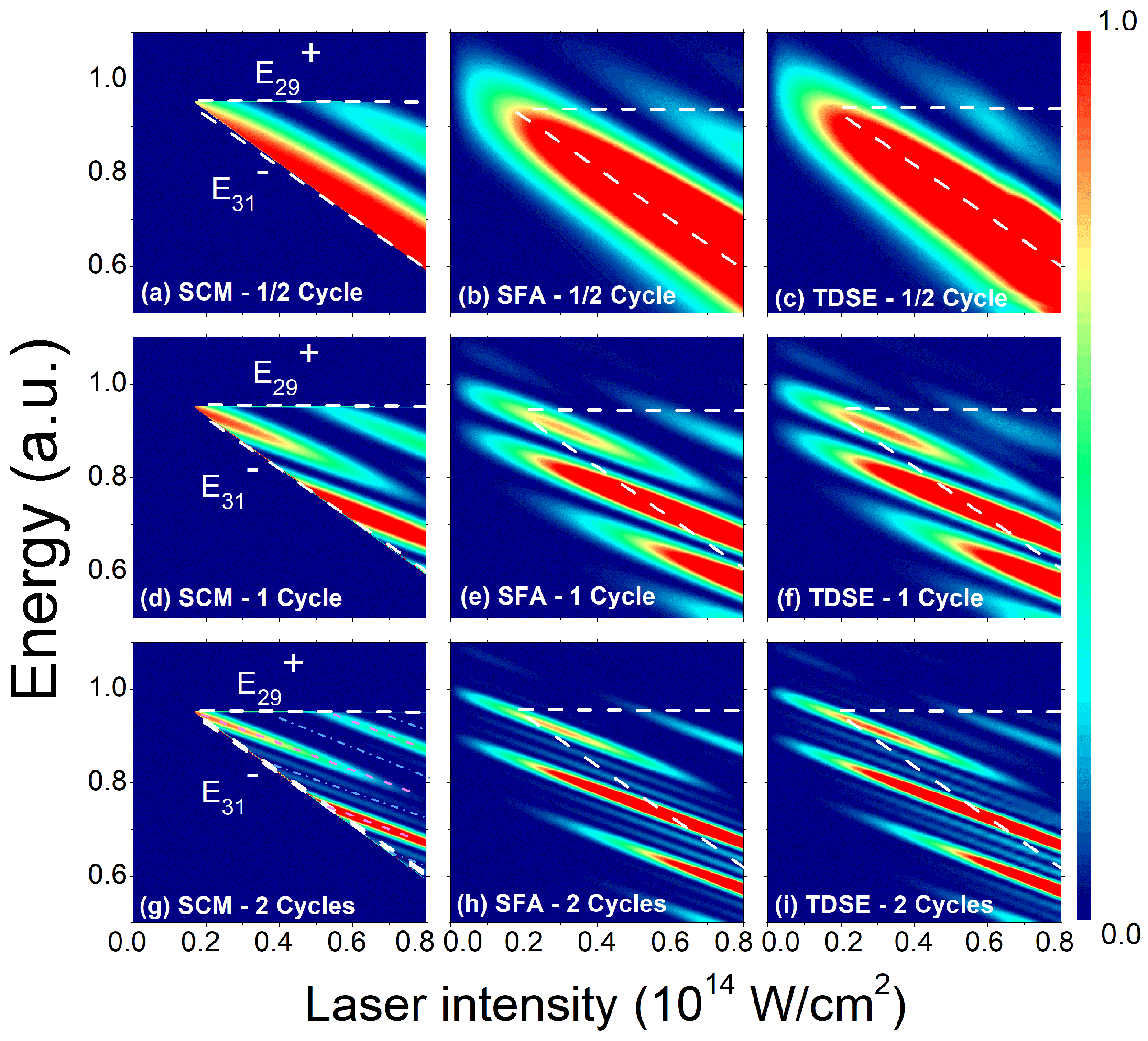 - Arbó, D.G.; Ishikawa, K.L.; Schiessl, K.; Persson, E.; Burgdörfer, J. Intracycle and intercycle interferences in above-threshold ionization: The time grating. Phys. Rev. A 2010, 81, 021403(R). [Google Scholar] [CrossRef]