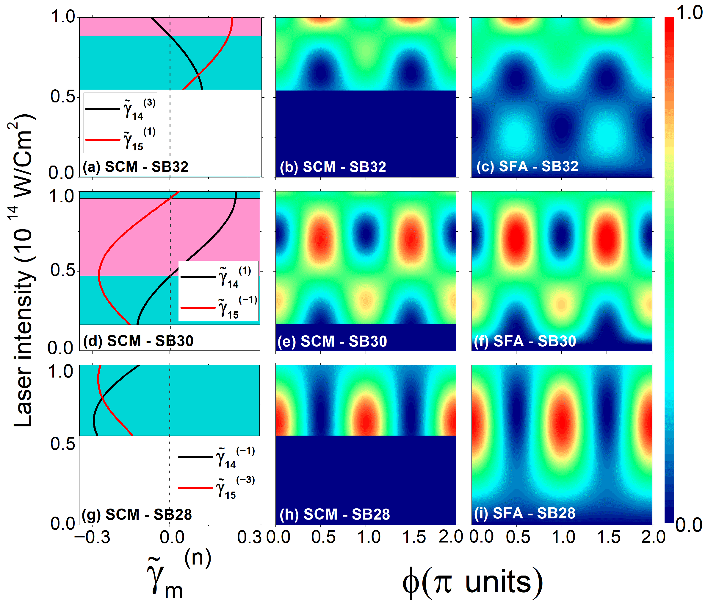 - Maxwell, A.S.; Figueira de Morisson Faria, C.; Lai, X.; Sun, R.; Liu, X. Spiral-like holographic structures: Unwinding interference carpets of Coulomb-distorted orbits in strong-field ionization. Phys. Rev. A 2020, 102, 033111. [Google Scholar] [CrossRef]
