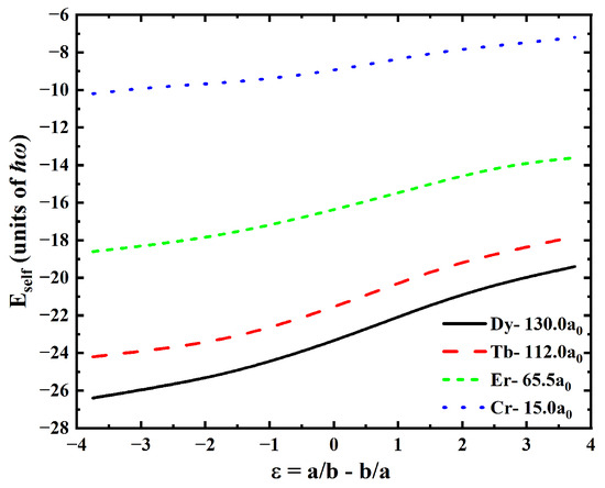 Self-energy plotted as a function of the deformation for four different impurities. These plots were obtained for a system of 2000 Dy atoms confined in the -plane with their dipole moments aligned along the z-axis.