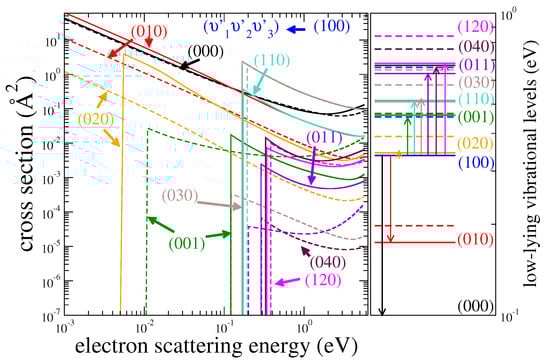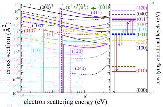 - Nishimura, T.; Gianturco, F.A. Vibrational excitation of water by low-energy electron scattering: Calculations and experiments. Europhys. Lett. 2004, 65, 179–185. [Google Scholar] [CrossRef][Green Version]