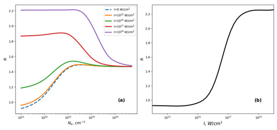where photoionization cross section. As follows from (1), photon pumping affects the ratio R at intensities as follows:
