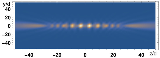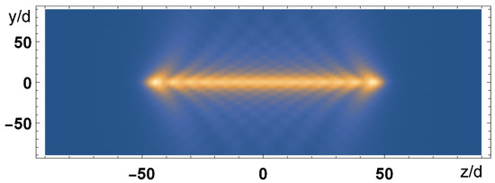 - Bettles, R.J.; Gardiner, S.A.; Adams, C.S. Cooperative eigenmodes and scattering in one-dimensional atomic arrays. Phys. Rev. A 2016, 94, 043844. [Google Scholar] [CrossRef]