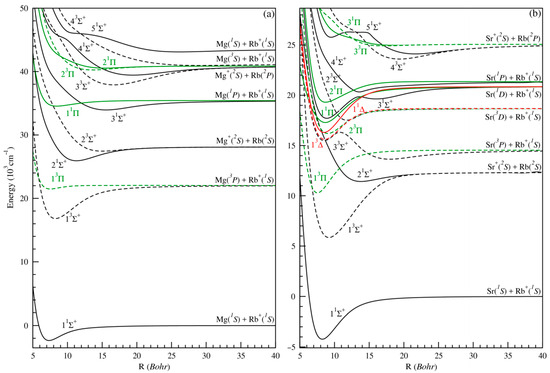 SrRb+ and MgRb+ were studied using the semiempirical pseudopotential method in its semi-local form, as proposed by Fuentealba et al. [43]. In this approach, the Mg2+/Sr2+ and Rb+ cores are replaced by effective core potentials (ECPs).