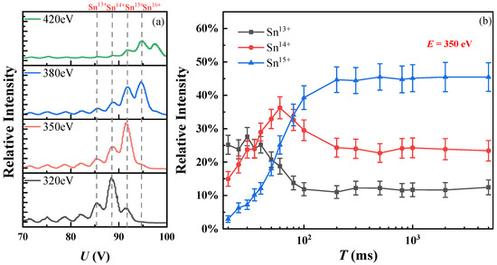 - Scheers, J.; Shah, C.; Ryabtsev, A.; Bekker, H.; Torretti, F.; Sheil, J.; Czapski, D.A.; Berengut, J.C.; Ubachs, W.; López-Urrutia, J.R.C.; et al. EUV spectroscopy of highly charged Sn13+−Sn15+ ions in an electron-beam ion trap. Phys. Rev. A 2020, 101, 062511. [Google Scholar] [CrossRef]