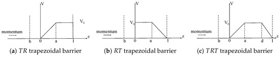 where . For the traditional configuration, , and for the new configuration, . Furthermore, similarly to Ref. [16], the wave number , , and . Characteristic length scales are also introduced, defined as and , as well as the corresponding dimensionless wave numbers and . Here, both and refer to the absolute values of the slopes of the triangular barrier regions among the three types of trapezoidal barriers. Specifically, corresponds to the region with a positive slope, while corresponds to the region with a negative slope. For trapezoidal barriers, we have