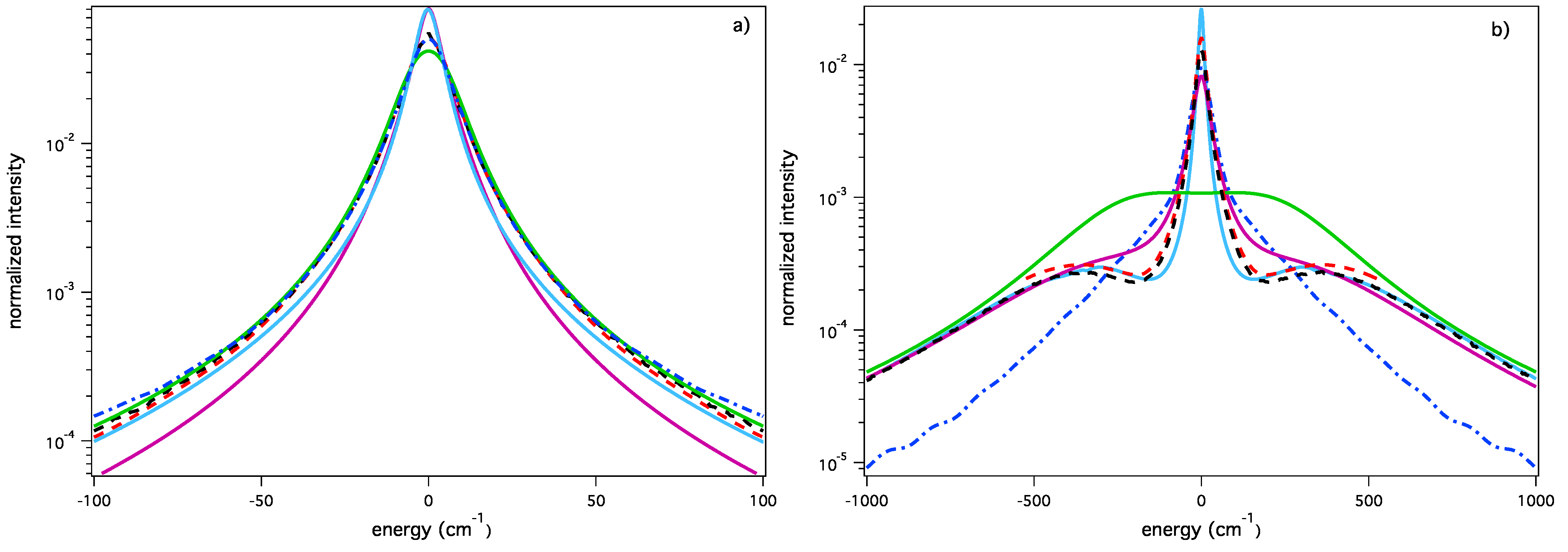 and the line shape is obtained by a Fourier transform of . Although all line shape simulations are based on the same scheme, we will see in the next section that they can differ slightly depending on the details of the models.