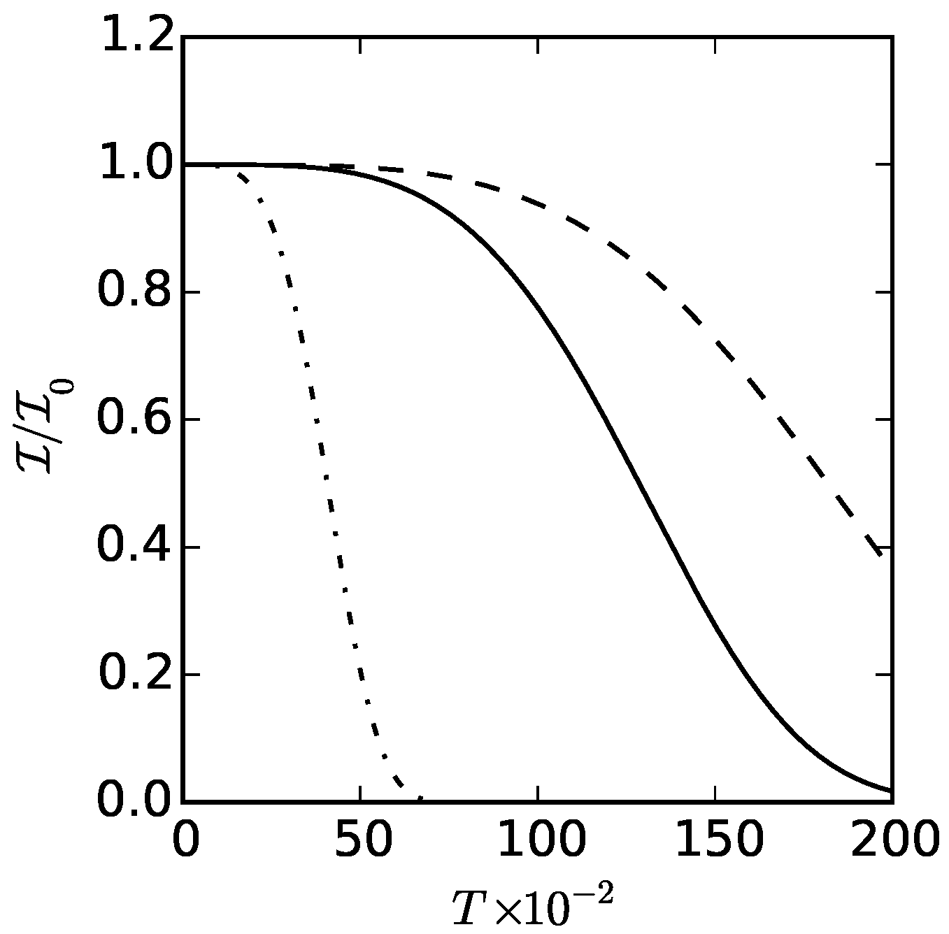where , , and where , , and . The other parameters in Equation (1) become and, . The other important dimensionless parameter is the cloud temperature , where , where is the Boltzmann constant. For where the standing wave laser is near the D2 transition, , and K. For the rest of this paper, primes will be dropped for clarity, and unless otherwise stated, all introduced variables will be dimensionless.