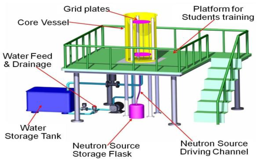 The subcritical facility is an open-tank, uranium-fueled light water reactor, utilized for the experimentation and education of students. In terms of operation, the reactor utilizes a plutonium beryllium (Pu-Be) neutron source to sustain a chain reaction [4].