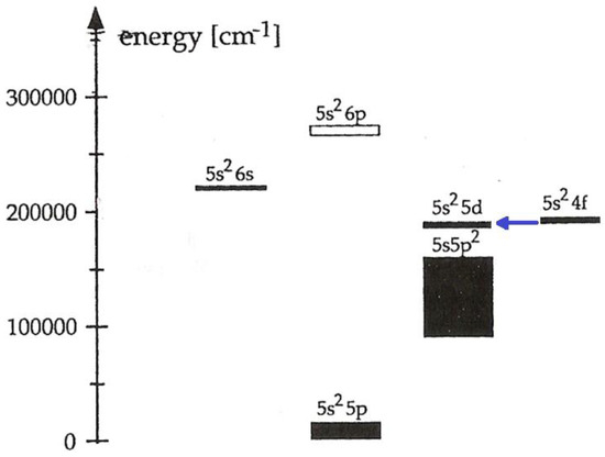 - Reyna Almandos, J.G.; Bredice, F.; Gallardo, M.; Pagan, C.J.B.; Di Rocco, H.O.; Trigueiros, A.G. 5s25p2 (5d+6s) configurations in triply ionized xenon (Xe IV). Phys. Rev. A 1991, 43, 6098–6103. [Google Scholar] [CrossRef] [PubMed]