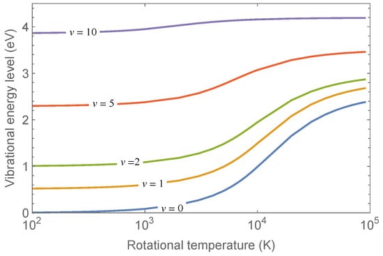 Rotationally-averaged vibrational energy levels (Equation (5)) as a function of the rotational temperature.