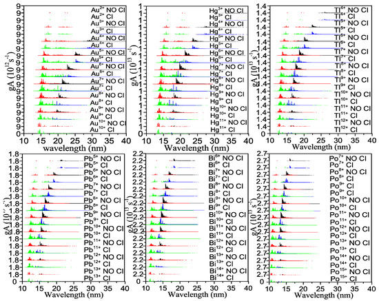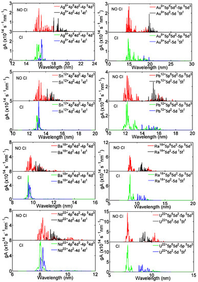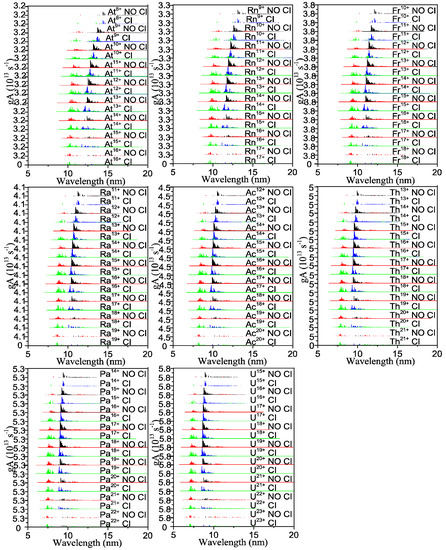 - Kilbane, D. Transition wavelengths and unresolved transition array statistics of ions with Z=72–89. J. Phys. B At. Mol. Opt. Phys. 2011, 44, 165006. [Google Scholar] [CrossRef]