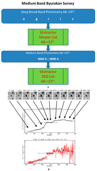 (a) Photometry algorithm scheme and (b) scheme of SED construction based on medium-band data [9].