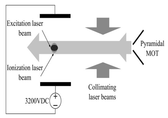 The time of flight of an atom through the excitation zone is determined by the laser beam waist size