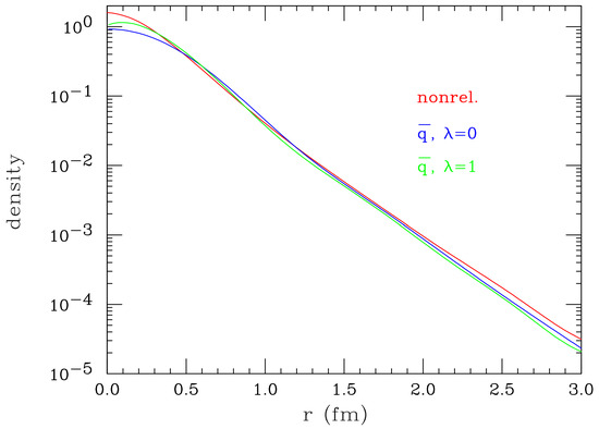 These corrections can be incorporated if a quantitative density is desired. In Figure 1, we show the charge density derived from a parameterized fit to the world data [20], before and after the replacement of q by and use of the multiplicative factor. The main change occurs for small r, where the density is appreciably reduced. This reduction has a desirable effect: while densities calculated non-relativistically from typical form factors often lead to a kink at (the dipole form factor with the corresponding exponential density is the prime example), the density determined after relativistic corrections is close to flat, as it must be. At fm, the shape of the density is hardly changed, and the relative r-dependence in the range 1–3 fm is changed by a factor of 1.17 only.