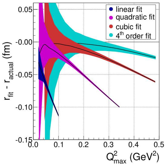 In several of the published analyses of e-p data, the dependence of the extracted radius R on the maximum momentum transfer of the data employed has been studied. These works have often produced an apparently counter-intuitive result: the value of R changes significantly with . As an example, we show in Figure 8 the results of Lee et al. [64].