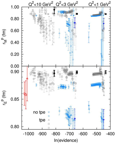 - Graczyk, K.; Juszczak, C. Proton radius from Bayesian inference. Phys. Rev. C 2014, 90, 054334. [Google Scholar] [CrossRef]