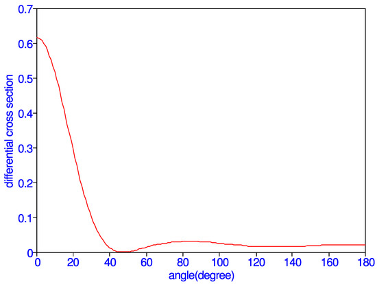 (Color online) Differential cross section vs. angle (degree) at k = 1.0.