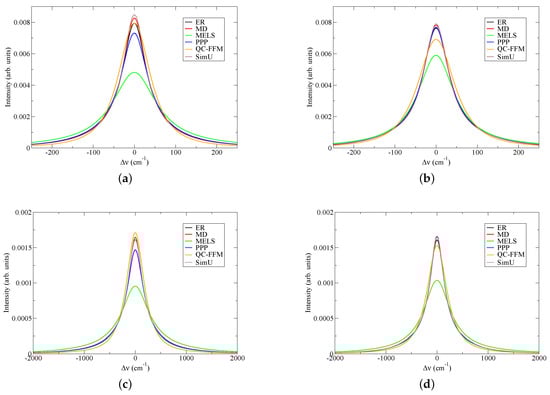 The lineshapes obtained by the simulations agree very well in all sub-cases. The main principal difference between these three codes is their approach to modeling the plasma microfields. ER and SimU assume Debye quasiparticles (QPs), while MD implements true Coulomb N-body molecular dynamics and therefore should be the most accurate. ER assumes that perturbers move along straight paths, while SimU takes into account interactions between the radiator and perturbers (but not between perturbers). Furthermore, SimU ions are assumed to be screened by electrons and ions themselves, while ER ions are assumed to be screened only by electrons. It is thus expected that SimU yields smaller linewidths than ER does due to the effective treatment of the perturber–perturber interactions that are either somewhat overestimated (SimU) or underestimated (ER), with the more accurate treatment of MD in between. Indeed, this is what is observed in the results presented here. However, the differences in the results between all the three approaches are rather minor for the modestly coupled plasmas considered here.