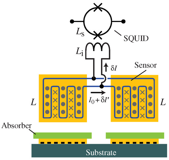 Magnetic calorimeters use the Curie-like temperature dependence of the magnetization of a paramagnetic material in a weak magnetic field to precisely determine the temperature change of the detector after the absorption of an X-ray photon [67,68]. The resulting change of magnetization is then read-out by a highly sensitive low-noise SQUID magnetometer as shown in Figure 7. The depicted detector layout makes use of two single pixels that are read out in parallel. This gradiometric setup minimizes the effect of temperature fluctuations of the heat bath and allows the preparation of a superconducting persistent current in the pick-up coil that generates the magnetic field that is required for the temperature sensor. The temperature sensors developed by our group make use of gold or silver that is doped with several hundred ppm of the rare-earth element erbium. The thermodynamic properties of these materials are well understood [69]. As the detectors can be fabricated in our in-house cleanroom, key features of a calorimeter like energy resolution, active detection area and detection efficiency can be optimized and adapted to the needs of a given experiment.