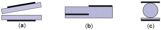 The equivalent circuit approach is reliable for characterization of DBD geometries, where the capacitances of the reactor do not depend on the operation conditions. The simplest equivalent circuit (Figure 5) contains the non-linear element R, the “black box”. Current measurements in addition to the measurements of the applied voltage compensate the lack of knowledge about this element. The introduction of additional nonlinear elements, such as variable capacitances, is problematic. A large variety of the DBD geometries has been used in applications [6], and the capacitance might depend on the operation conditions for some of them. Examples of such DBD arrangements are shown in Figure 8 schematically and discussed in the following subsections.