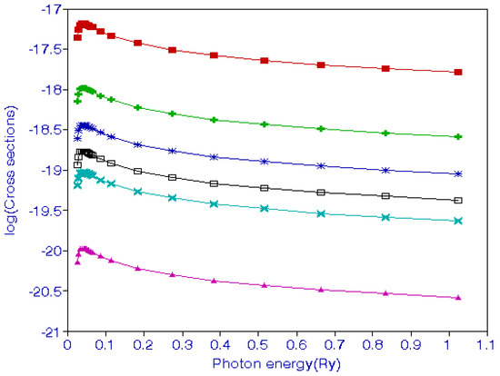 This shows that the present cross sections are much smaller compared to the detachment to the 1S state and the maximum of these cross sections is at k = 0.13. The cross sections obtained are shown in Figure 1, where log (cross sections) vs. photon energies are given. It is noted that cross sections change considerably from n = 2 to n = 3, and again from n = 6 to n = 7.