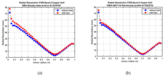 (a) Radial resolution without halo effect and with halo effect; (b) radial resolution without halo effect and with halo effect.