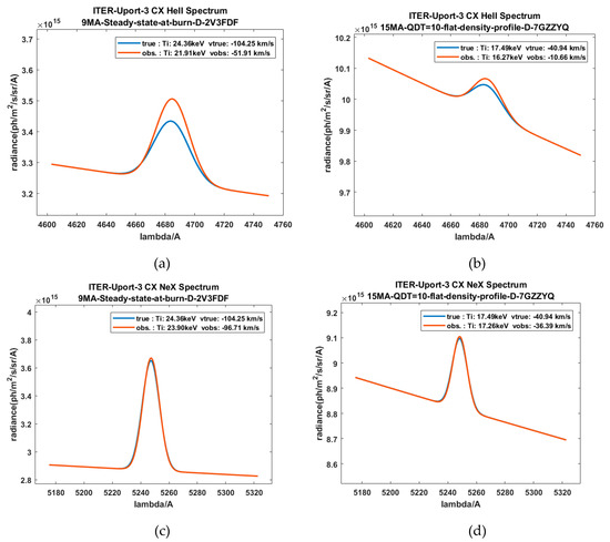 (a) SOS cross-section-effect-modeling for HeII spectrum. 9MA_Steady_state_at_burn_D_2V3FDF; (b) SOS cross-section-effect-modeling for HeII spectrum. 15MA_QDT=10_flat_density_profile_D_7GZZYQ. (c) SOS cross-section-effect-modeling for NeX spectrum. 9MA_Steady_state_at_burn_D_2V3FDF (d) SOS cross-section-effect-modeling for NeX spectrum. 15MA_QDT=10_flat_density_profile_D_7GZZYQ.
