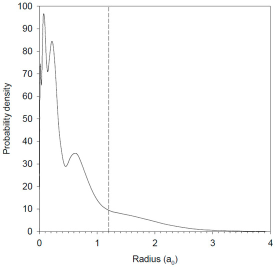 However, as mentioned, for example, in [28], the cut-off radius is not an unambiguously defined parameter. Therefore, the core-polarization contributions were also estimated in a third model (HFR+CPOL2), in which we used the same dipole polarizability as the one used in HFR+CPOL1 but with a different value of the cut-off radius, namely rc = 1.20 a0, representing the distance at which the total probability density of the ionic core orbitals falls to 10 per cent of its maximum value, as suggested in [29]. This is illustrated in Figure 1 which shows the calculated probability density of the La IV ionic core in the ground configuration of the lanthanum atom.