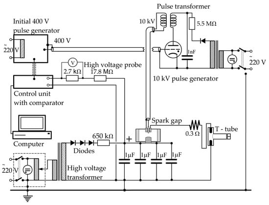 Schematic representation of the electrical system used for performing the discharge through the T-tube.