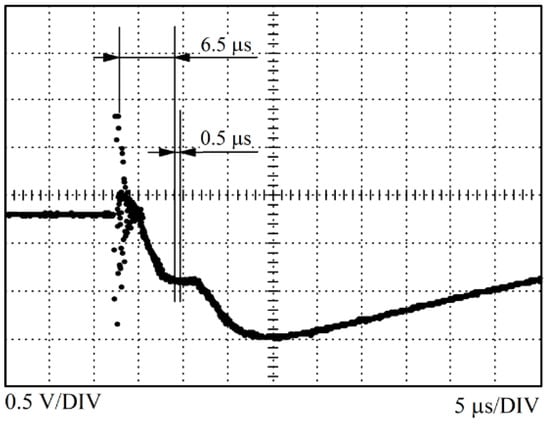 A photomultiplier tube and an ICCD camera were placed at the exit of the spectrometer, and a selection mirror allowed for alternating between those two detectors. The photomultiplier tube was used to observe the time evolution of the optical signal emitted from the plasma, as shown in Figure 6.