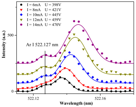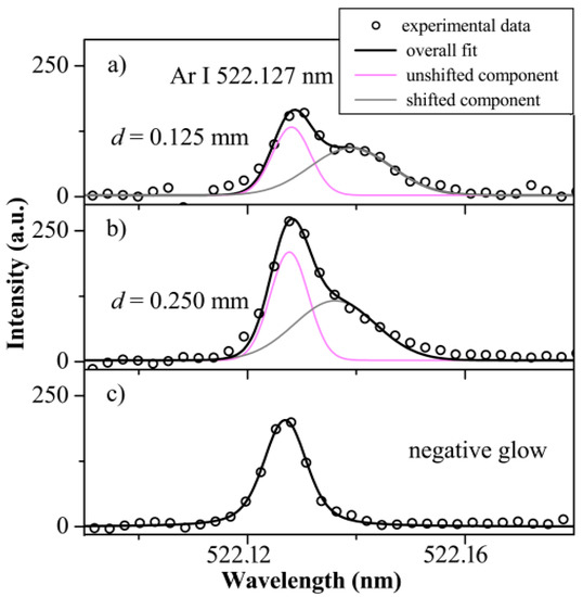 - Majstorović, G.L.; Ivanović, N.V.; Šišović, N.M.; Djurović, S.; Konjević, N. Ar I and Ne I spectral line shapes for an abnormal glow discharge diagnostics. Plasma Sources Sci. Technol. 2013, 22, 045015. [Google Scholar] [CrossRef]