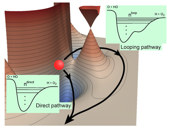 Direct and looping pathways for the O + OH reaction illustrating the number of bound states supported in the effective potentials along each pathway [43]. Reproduced with permission from Kendrick et al. [43].