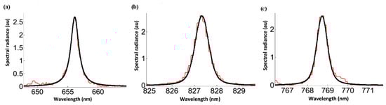 The fitting of the argument in Equation (2) to the experimentally measured line shape can be formulated with two line-shape parameters, namely, the self-absorbed Lorentzian FWHM, ΔλS1, and the optical depth, , at line center [2].
