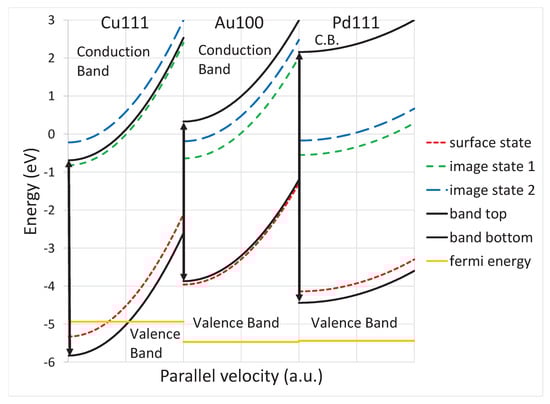 - Chulkov, E.V.; Silkin, V.M.; Echenique, P.M. Image potential states on lithium, copper and silver surface. Surf. Sci. 1997, 391, L1217. [Google Scholar] [CrossRef]