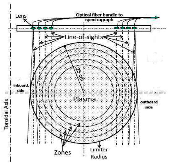 - Banerjee, S.; Kumar, V.; Chowdhuri, M.B.; Ghosh, J.; Manchanda, R.; Patel, K.M.; Vasu, P. Space- and time-resolved visible-emission spectroscopy of Aditya-tokamak discharges using multi-track spectrometer. Meas. Sci. Technol. 2008, 19, 045603. [Google Scholar] [CrossRef]