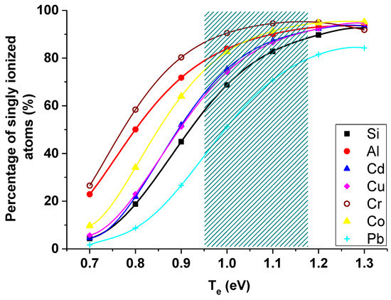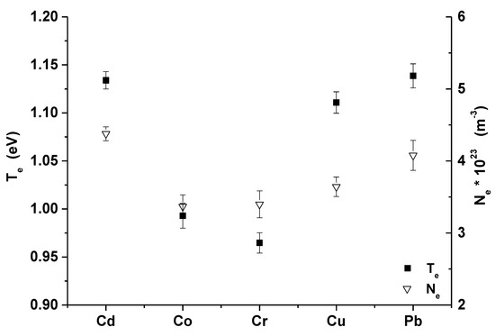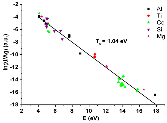- Aguilera, J.A.; Aragón, C. Multi-element Saha–Boltzmann and Boltzmann plots in laser-induced plasmas. Spectrochim. Acta B 2007, 62, 378–385. [Google Scholar] [CrossRef]