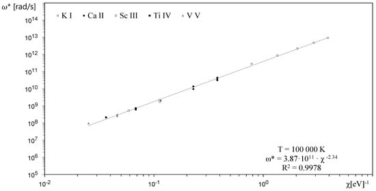 - Purić, J.; Šcepanović, M. General Regularities of Stark Parameters for Ion Lines. Astroph. J. 1999, 521, 490. [Google Scholar] [CrossRef]