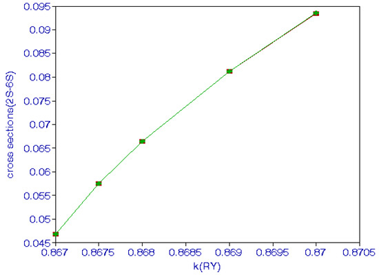 In Figure 1, total excitation cross sections for 2S to 6S are shown. We added cross sections at ki = 0.867, 0.8675, 0.868, and 0.869, close to the threshold. In the present calculation, very close to the threshold kf tends to zero and the Bessel function is close to 1, making cross sections large in the threshold region.