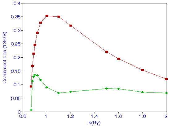 A comparison of positron-impact excitation cross sections and electron-impact cross sections to the excited 2S is shown in Figure 3, which was given in the previous publication [7] and is repeated again because results at higher energies are not the same as before, as explained above. The positron-impact cross sections are higher than the electron-impact cross sections.