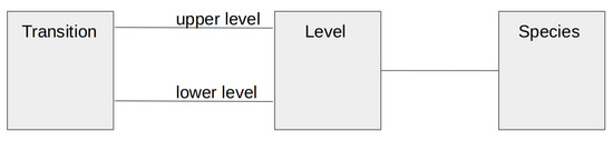 - VAMDC XSAMS Standard Documentation. Available online: http://vamdc.eu/documents/standards/dataModel/vamdcxsams (accessed on 14 July 2020).