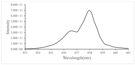 Electron density method: For calculating the electron densities, the method of using full width at half-maximum (FWHM) with the Stark broadening of spectral lines was used. To determine the electron density of a sample, the FWHM of the hydrogen line at 656.3 nm line was used; this corresponds to a Balmer alpha line for hydrogen. The linear Stark width for hydrogen lines is shown in Equation (3).