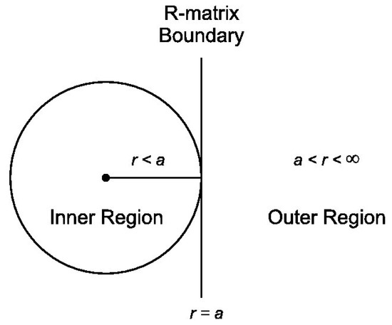 In the R-matrix method, the space is divided into two regions, the inner and the outer regions, of a sphere of radius with the ion at the center as illustrated in Figure 1. is large enough to include electron–electron interaction potential inside and is almost zero outside the boundary. Hence outside potential at is Coulombic from perturbation of long-range multipole potentials. In the inner region, the radial part of the outer electron wave function () is expanded in terms of a basis set, known as the R-matrix basis,