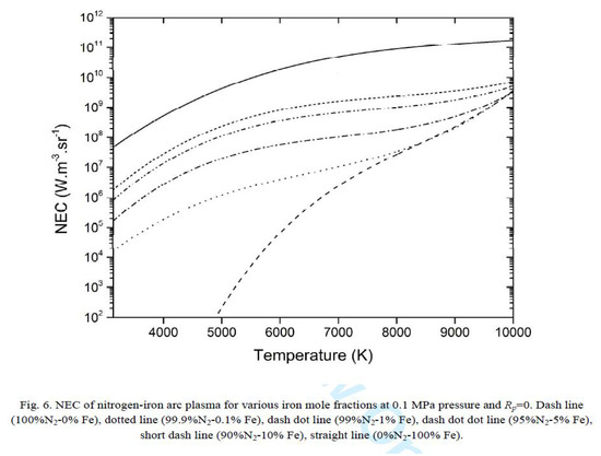 - Adineh, V.R.; Coufal, O.; Zivny, O. Thermodynamic and radiative properties of plasma excited in EDM process through N2 through taking into account Fe. IEEE Trans. Plasma Sci. 2012, 40, 2723–2736. [Google Scholar] [CrossRef]